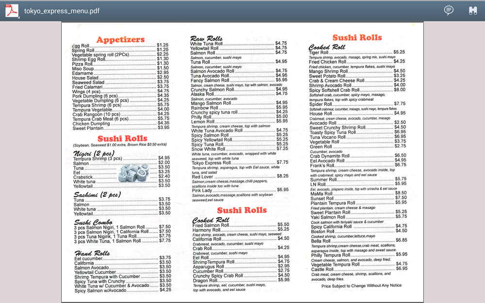 Tokyo Express Newark Menu (Update 2025)