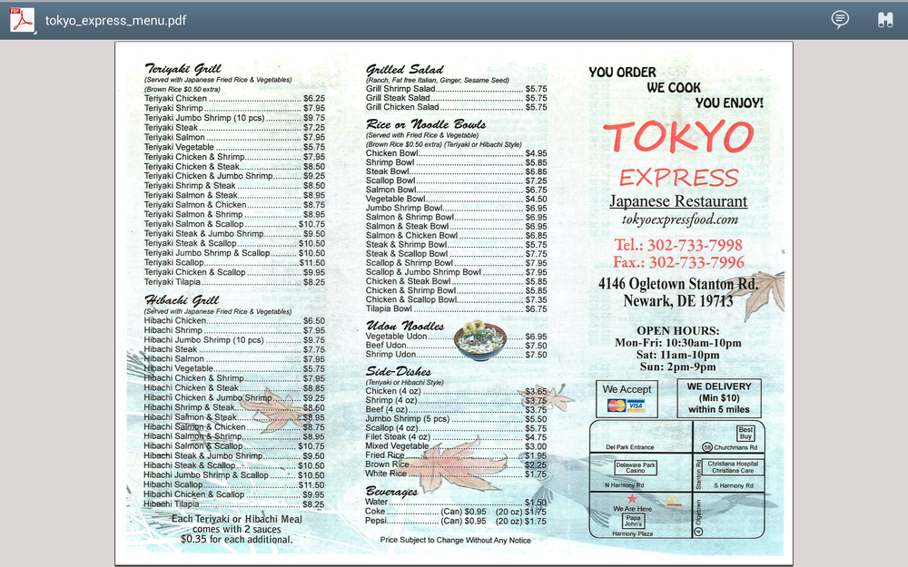 Welcome to Tokyo Express Newark, a hidden gem located at 4146 Ogletown Stanton Rd, Newark, DE. This Japanese restaurant proudly serves a delightful menu that encompasses both traditional and innovative dishes. Their appetizers are a great way to start your meal, featuring favorites like Vegetable Dumplings and Tempura Shrimp.